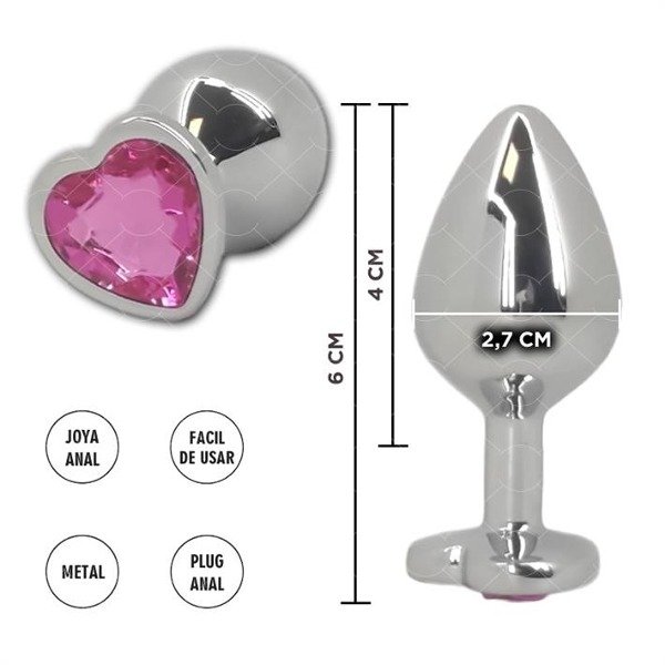 Joya anal corazón rosa metálica tamaño S, divertido y llamativo hecho en metal brillante que deslizas suavemente. Su tamaño es de 6.5X2.5 cm, siendo aptos para principiantes como para experimentados en la práctica de la estimulación anal. Tienen una hermosa piedra rosa en formade corazón.